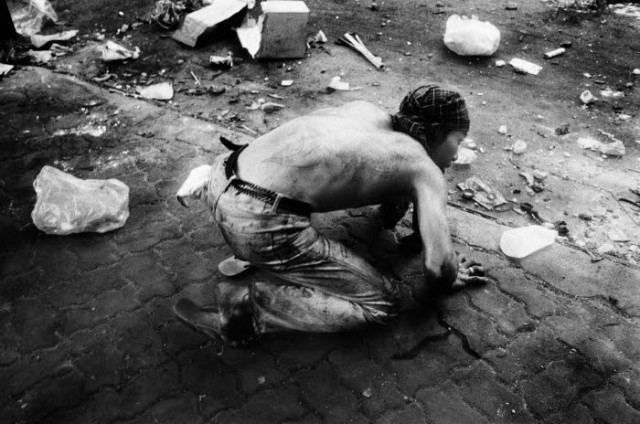 Pendant plus de deux mois, 5.000 "chemises rouges" ont occupé le coeur de Bangkok pour réclamer la démission du gouvernement. Le fosse s'est creuse entre les masses rurales et populaires des environs de la capitale et les élites de Bangkok. Entre le 13 mai et le 19 mai, les affrontements entre les militaires et les manifestants ont été d'une grande violence. 89 morts et 1900 blessés. Bangkok. Thaïlande. 05/2010.