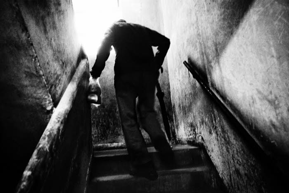 Cage d'escalier pour accéder à l'appartement où vivent 10 locataires, la plupart âgés ou malades. Hong Kong. Chine. 03/2010. ©Bertrand Meunier - Tendance Floue