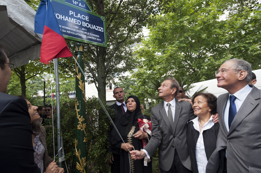 Ce jeudi 30 juin, la ville de Paris rendait hommage au Tunisien Mohamed Bouazizi, en inaugurant une place à son nom dans le XIV° arrondissement. Mohammed Bouazizi est mort le 4 janvier 2011 suite à son immolation par le feu le 17 décembre 2010, elle-même à l’origine des manifestations qui ont conduit à la chute de la dictature Ben Ali.