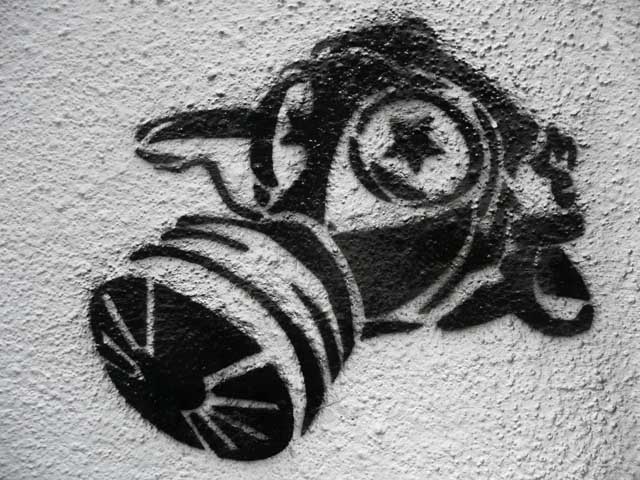 Pochoir de masque à gaz, très utilisé par les journalistes turcs.