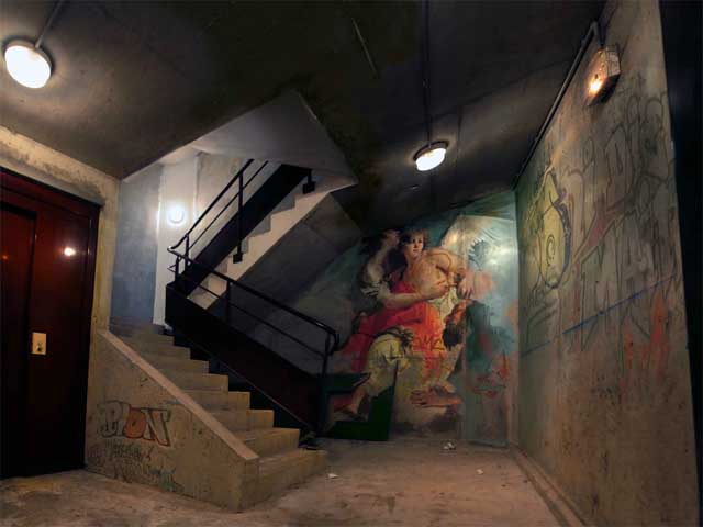 Patrick Baillet est un artiste français qui fait des graffitis en peignant des morceaux de peintures célèbres dans des squats et des lieux abandonnés.