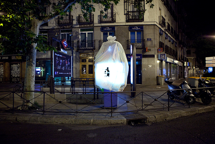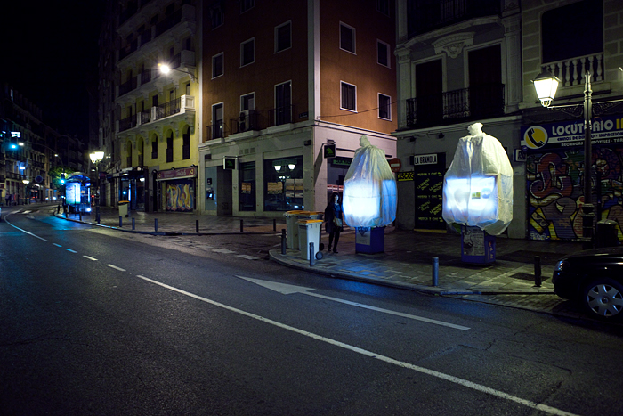 Ce collectif street-art a récemment monté des installations inspirées par les mouvements démocratiques du 15 mai en Espagne et dont la dernière en date, réalisée pour le festival Dockville de Hambourg, porte sur les conséquences de l’explosion de la centrale nucléaire de Fukushima au Japon. On peut s’attendre à ce qu’il réagissent aux prochains évènements, et embellissent des éclats de leurs créations, phosphorescentes, luminescentes et féériques les rues de Madrid ou d’autres villes d’Europe.