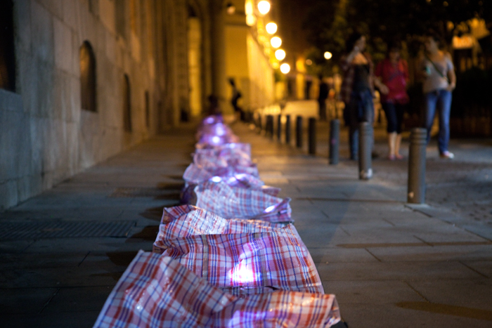 Du recyclage à la surveillance en passant par le nucléaire ou la crise économique, Luz Interruptus se déploie à la tombée de la nuit, allumant ça et là des petites lumières à l’intention de leurs concitoyens en réaction à un thème de société ou à une actualité qui leur tient à coeur.