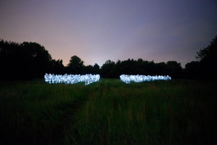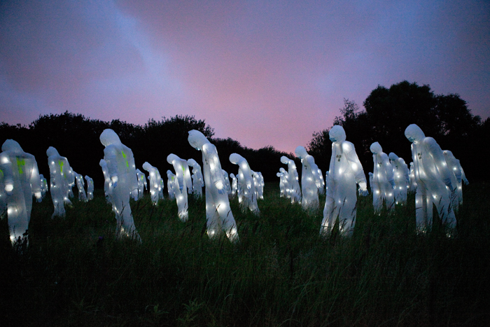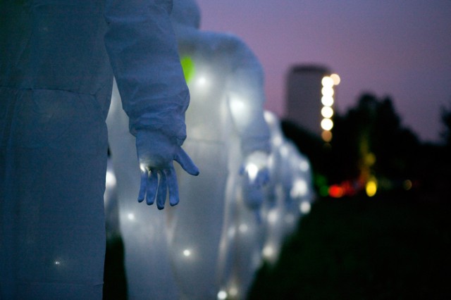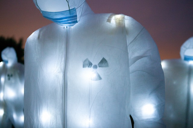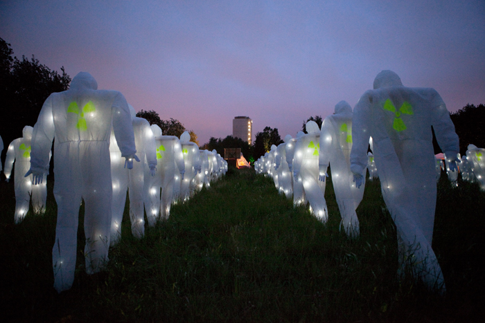 Avec notre mystérieuse armée de 100 personnages radioactifs illuminés, avançant de manière menaçante, sur le site en plein air du festival Dockville, nous voulions inviter à la réflexion sur l’utilisation et l’abus de l’énergie nucléaire, peu coûteuse économiquement mais qui a des effets secondaires dévastateurs et irréversibles pour l’environnement et la santé publique.