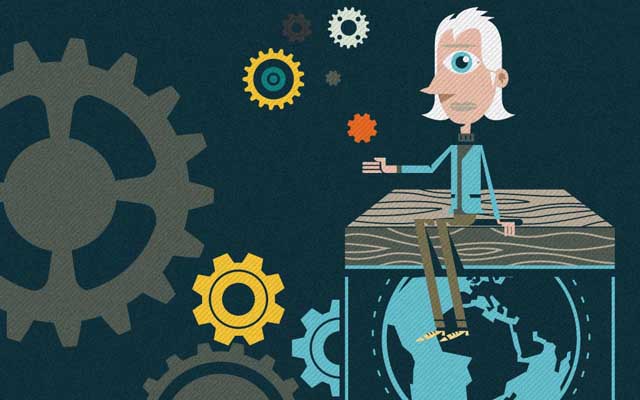 Julian Assange et la "machine" WikiLeaks. Image Loguy pour OWNI. Cliquez sur l'image pour accéder au poster intégral.