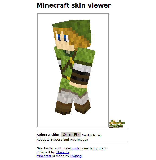 Vous n’êtes sans doute pas passé à côté du phénomène Minecraft, ce jeu qui vous plonge dans un monde créé dynamiquement et composé de cubes représentant du sable, des cours d’eau, de la pierre, des arbres, etc. Le concept de base est tel que le joueur peut modifier ce monde à volonté… un peu comme pour des legos ! Et bien, Djazz, un jeune développeur a créé ce “visualiseur” de personnage Minecraft. Vous allez pouvoir concevoir une petite image, la mettre en ligne sur le site et… voir votre personnage prendre vie, tout simplement !