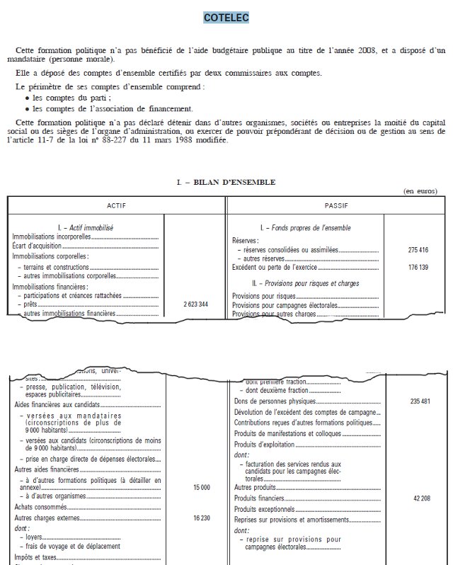 Extrait de la publication générale des comptes des partis et groupements politiques au titre de l’exercice 2008.