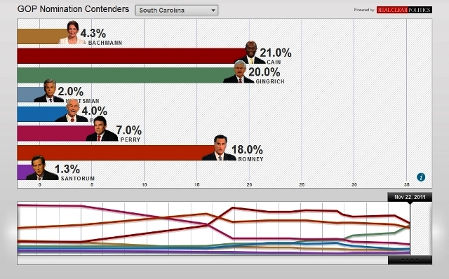 Petit dernier pour la route, pour inaugurer la période intensément politique qui ne va pas manquer de s’ouvrir, jetez un coup d’oeil au baromètre de popularité, “Poll tracker” produit par USA Today qui met en scène la course pour la primaire républicaine.