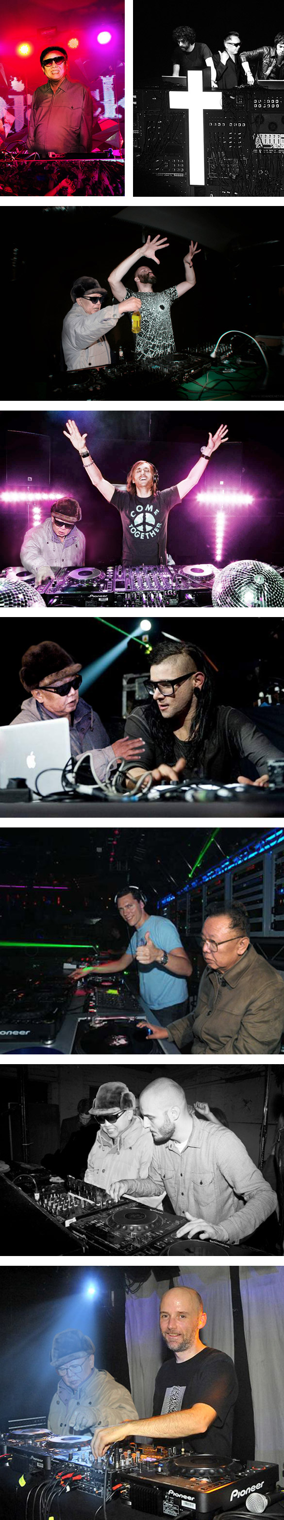 Le WTF de cette semaine est placé sous le signe de la mort de l’ancien dictateur Kim Jong-il. Des petits malins ont entrepris l’amusante expérience d’installer l’ancien dictateur aux platines pour lui donner un côté beaucoup plus sympathique. Un hommage ? Une parodie ? Du cynisme ? Allez savoir, en tout cas, c’est une belle dose de WTF que de l’imaginer mixer ;-)
