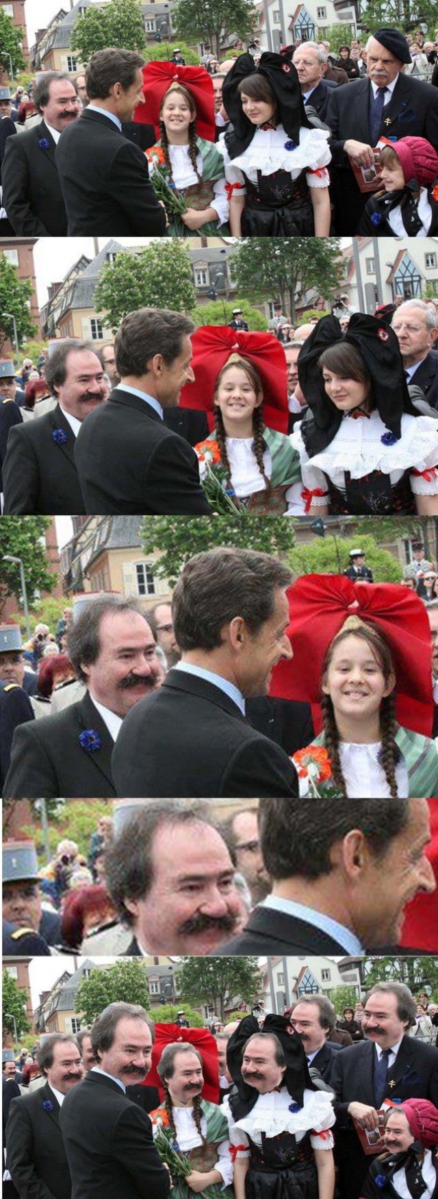 Mais le plus beau cadeau de Sarko à vous, peuples étranges des interouèbes, automobilistes des autoroutes de l’information, n’est pas tant cet aveu d’inconformité aux pratiques d’Internet, qui cherchera toujours la petite bête. La vraie bénédiction, ce sont ces photos. Puits à mèmes sans fin. Corne d’abondance du LOL.