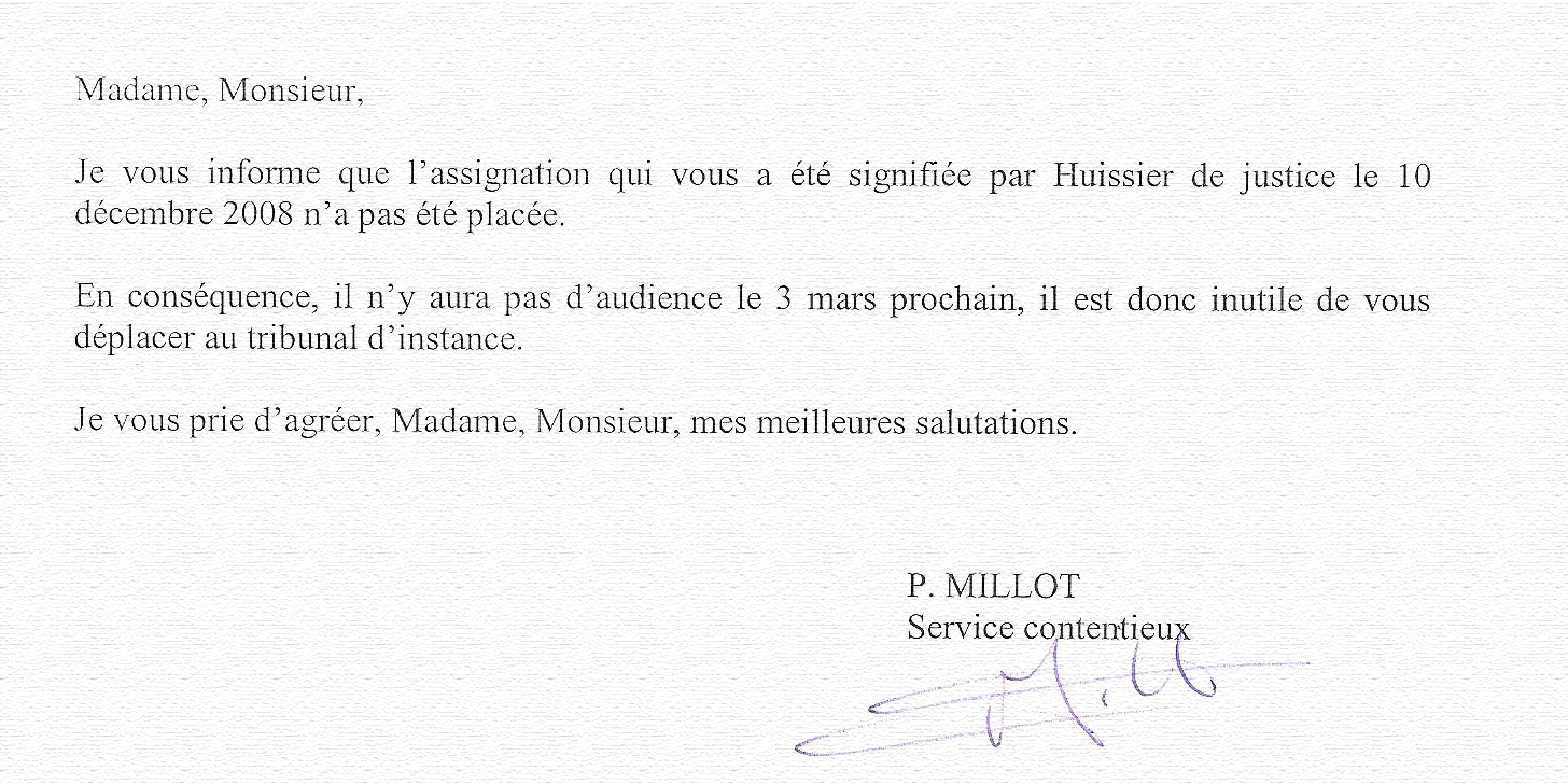 En première ligne se trouve Saadia Trebol, alors présidente de l’Amicale (elle le restera jusqu’en 2007). Un huissier se rend à son domicile pour lui délivrer une assignation. Coup de théâtre. Quelques jours avant l’audience, elle reçoit un coup de téléphone d’Emmaüs Habitat : “Ne vous déplacez pas, c’est une erreur de notre part”. “J’étais contente, j’ai demandé si c’était possible d’avoir cette déclaration par écrit”, explique-t-elle. La société lui concède :