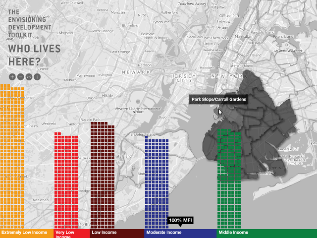 L’idée de “affordable housing” (logement abordable) peut paraître banale, comme l’indique le site, sauf qu’il revêt souvent de nombreuses significations selon la position que vous vous attribuez sur l’échelle sociale. Le CUP a donc réalisé un atelier interactif en kit permettant de comprendre pourquoi la seule question vraiment importante à se poser au moment de bâtir des logements est : “abordable pour qui ?”. Un kit qui encourage donc le citoyen à devenir le porte-voix de la raison par la data afin d’évangéliser d’autres citoyens ainsi que les élus. Sans aucun doute la première graine new-yorkaise d’une longue série d’initiatives populaires qui viendront essaimer nos contrées au gré du vent printanier.