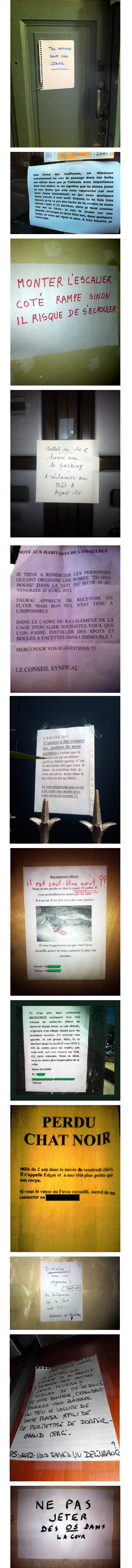 Le WTF de cette semaine s’appelle “Chers voisins” et sélectionne avec talent les petits messages que les voisins s’affichent par post-it et autres feuilles interposées… ;-)