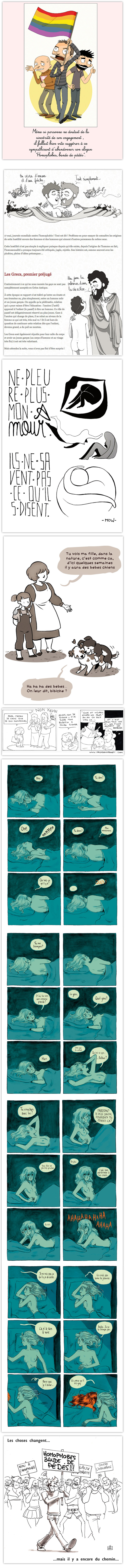 Allez hop, on démarre notre “Vendredi c’est Graphism!” avec un projet qui me tient à coeur et que j’ai pu découvrir cette semaine. Intitulé “17 mai”, ce projet présente une riche variété, tant sur le fond que sur la forme, d’histoires et d’illustrations. Chaque auteur, garçon ou fille, hétéro, homo ou autre, aborde à sa manière le thème du rejet. Usant d’un ton grave, d’humour, voire d’auto-dérision, chacun a puisé dans son expérience personnelle ou dans ses constats… Le discours s’étend bien entendu au-delà de la seule journée du 17 mai, le site est ouvert et ne demande qu’à s’enrichir de nouvelles contributions pour prolonger le débat. L’idée est ainsi de démontrer que rien n’est jamais acquis et que cette lutte se fait au quotidien et dans son entourage proche.