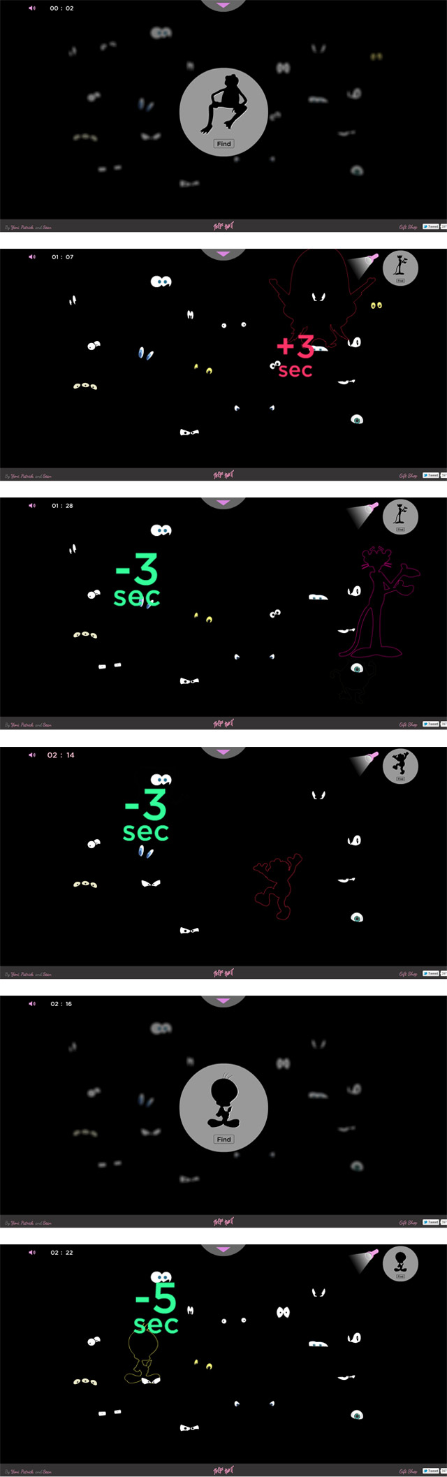 Je vous propose de découvrir “The Eyes Have It”, un jeu plutôt drôle et créé par Yoni Alter, Sean Dekkers, et Patrick Wolleb. Le principe du jeu est de faire correspondre les yeux d’un personnage de dessin animé à son corps. Le corps du personnage apparaîtra à l’écran et vous devrez ensuite deviner quelle paire d’yeux lui appartient. Essayez de deviner tous les personnages dans le meilleur temps possible et ensuite, comme d’habitude, vous en vanter sur Twitter ou Facebook ;-) Le jeu comporte trois niveaux de difficulté… attention donc à commencer doucement car la complexité augmente vite !