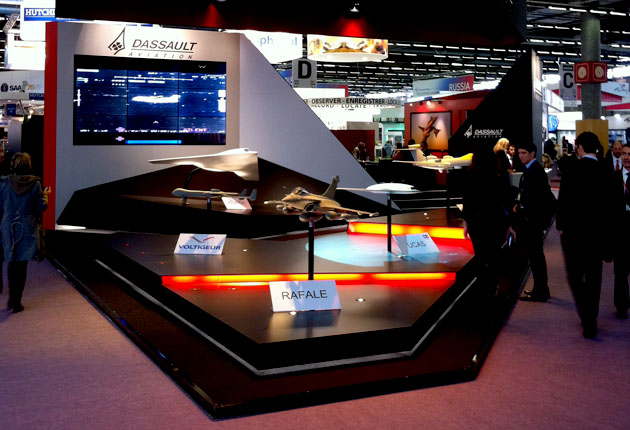 Des drones qui ne sont pas armés, contrairement aux produits de Dassault. Devant le grand espace de l’avionneur à Eurosatory, trônaient les réalisations du constructeur français, avec en pointe le Rafale (le célèbre avion de chasse qui ne parvient pas à s’exporter) et juste derrière les avions de combat sans pilote : nEUROn construit avec le Britannique BAE Systems, Voltigeur avec l’israélien IAI…
