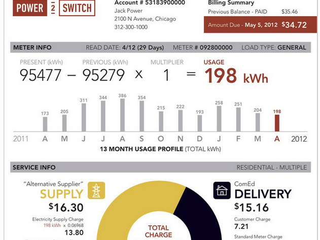 Le premier est l’oeuvre de Power2Switch, une start-up de Chicago qui propose un outil de comparaison des différentes compagnies d’électricité et offre la possibilité au consommateur final de comprendre enfin ce qu’il paie grâce à un modèle de facture parfaitement original et inédit.