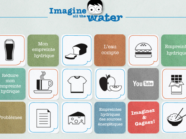 Après les Pixies, John Lennon. L’application “Imagine all the water”, créée par la Commission européenne, est un ensemble de petits carrés cliquables résumant le problème de l’empreinte hydrique, au travers de quelques exemples du quotidien : combien de litres d’eau nécessaires à la production d’un hamburger, d’un T-shirt ou encore une pinte de bière. Les autres liens renvoient vers une documentation plus précise ou des vidéos explicatives.