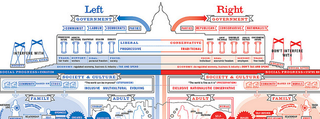 Après toutes ces applications interactives, voilà un lien pour reposer les doigts et faire travailler les yeux. Inutile de crier au “vieux lien” (“oldlink” pour les anglophones) : oui, ce post de blog date de décembre 2009. Il n’empêche que se replonger dans 30 beaux exemples d’infographies ne peut pas faire de mal. Si certaines tiennent le haut du pavé depuis longtemps – comme la représentation des différences entre droite et gauche par David McCandless – d’autres peuvent vous être plus inconnues, comme la visualisation des pays producteurs de vins sous forme de grappe (par le designer brésilien Alexandre Suannes) ou de celle de l’état d’Internet sur le continent africain (InfoState of Africa).