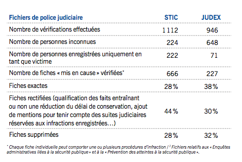 Chaque année, le rapport de la Cnil est l’occasion de refaire le même triste constat sur les fichiers d’antécédents judiciaires, Judex, Stic, ancien fichier des RG… : ils sont truffées d’erreurs lourdes de conséquences. En effet, “on évalue à 1,3 million le nombre d’emplois concernés par des procédures administratives“, rappelle la Cnil. Fourre-tout record avec 68% de la population française fichées, le STIC mélange mis en cause mais aussi et surtout victimes.