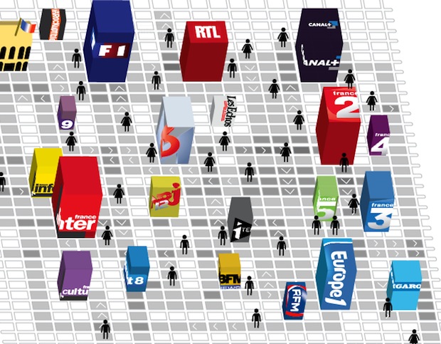 Télérama a cependant recensé ces mouvements entre médias en une infographie interactive. La catégorisation des journalistes (les “people”, les “loosers”, les “winners”) est un peu étonnante et les informations peu claires : il faut cliquer sur la silhouette et bien étudier le cheminement dessiné par les cases entre média entrant et média sortant pour comprendre le sens du mouvement. Mais l’idée et le contenu sont intéressants, d’autant que les mises à jour sont régulières.