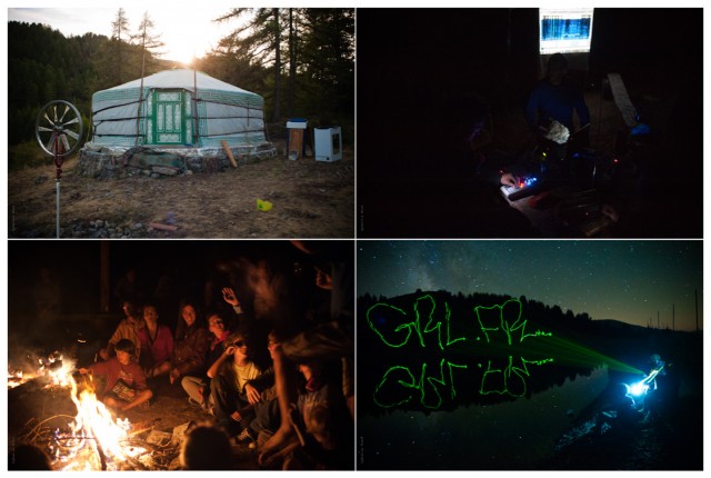 La vie la nuit : dans la yourte, le développement photo argentique, les expériences de musique expérimentale, convivialité autour du feu, et atelier lightpainting avec le Graffiti Research Lab. - (cc) Ophelia Noor