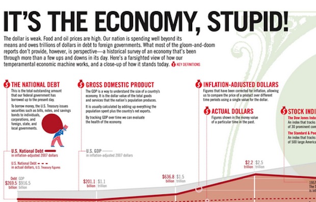 - une interview de Nigel Holmes [EN], spécialiste des “explanation graphics”, longtemps au Time magazine et auteur, s’il fallait n’en garder qu’une, de l’infographie “It’s the economy, stupid !” ;