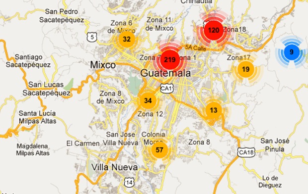 Une journaliste guatémaltèque, Claudia Méndez Arriaza, s’est lancée dans le même projet pour la ville de Guatemala City. Dans un pays où le taux d’homicides volontaires atteint les 35 pour 100 000 (selon les Données de l’Office des Nations Unies contre la drogue et le crime), cette démarche prend une autre dimension, celle de la dénonciation. Son site s’appelle d’ailleurs “Une vie est une vie”. Chaque point sur la carte correspond à un homicide et quand les données existent, le nom de la victime, sa profession et l’arme utilisée y sont mentionnés, pour lutter contre l’oubli.