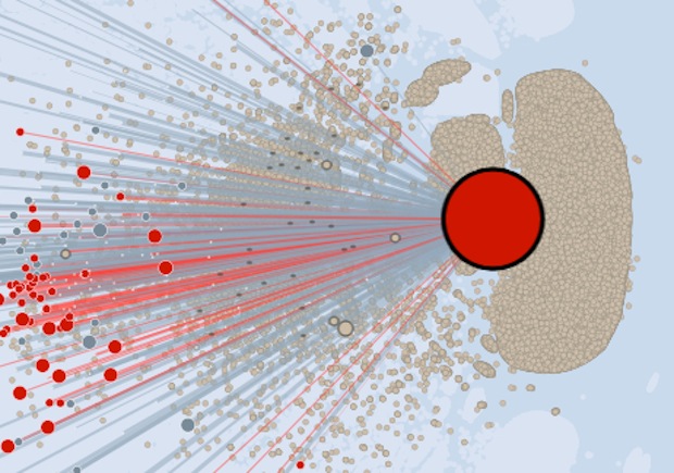 Le premier, gigantesque et fascinant, est celui du Wall Street Journal. Intitulé “Political moneyball”, il recense en un immense graphique de relations les financements des candidats aux élections. Chaque cercle représente un comité, un parti ou un donateur (entreprises, groupement, association, etc.). Vous pouvez cliquer à partir du graphique ou effectuer une recherche selon des critères précis. Les données sont issues de la Commission fédérale pour les élections. Un projet dans lequel on pourrait se perdre des heures et que l’on ne peut qu’admirer pour son apport à la démocratie, l’énorme travail demandé et sa lisibilité.