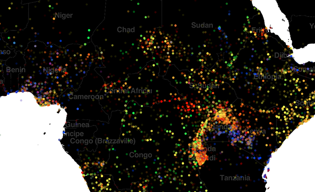 Titre : A map of armed conflicts in Africa between 1997 and 2011