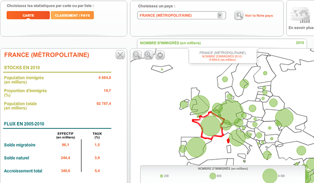 Note : “Comment les immigrés se répartissent-ils à l’échelle de la planète ? Dans quels pays sont-ils les plus nombreux ? Cet outil donne accès aux dernières statistiques des Nations unies pour 230 pays du monde.”