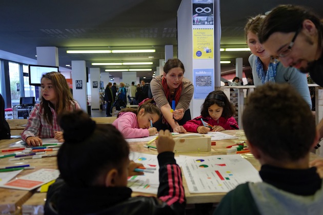 Neuf heures. Une douzaine d’enfants déferle sur le stand du collectif Open Data de Rennes. Des tables bricolées à partir de palettes, style DIY, à l’occasion du festival Viva-Cités.