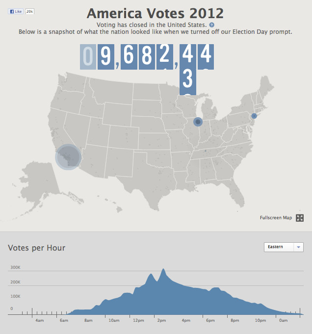 Toute la journée durant, les votes des usagers de Facebook ayant décidé de partager leur choix avec leurs amis apparaissaient sur cette carte. Depuis sur une boucle des derniers bulletins adressés, l'application propose quelques statistiques sur les participants.