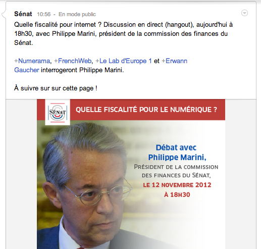Ce lundi soir, Philippe Marini, président de la commission des finances du Sénat, répondait aux questions des internautes sur une bulle vidéo Google+ (ce qui est assez drôle en passant, au vu de ce que Google encaisse en ce moment) et sur YouTube. Modéré (et motivé ?) par Erwann Gaucher, Antoine Bayet, Richard Menneveux et Guillaume Champeau, le sénateur de l’Oise présentait sa “fiscalité numérique neutre et équitable”. Florilège des questions sur la concurrence, l’optimisation fiscale des géants du web et leurs bénéfices records.